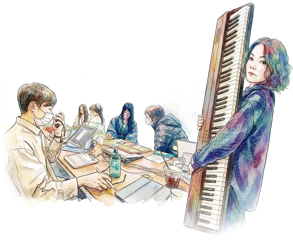 画家・理系漫画家・イラストレーター・グラフィックレコーダー・ゲームプランナー、映像作家、ミュージシャン、ナレーター、書道家、ミュージシャンなど、多種多様な職種の方が参加しています。また、中高生も参加しています。付き添いのご家族の参加も歓迎しています!(要利用料、大人はひとり1日1,100円)